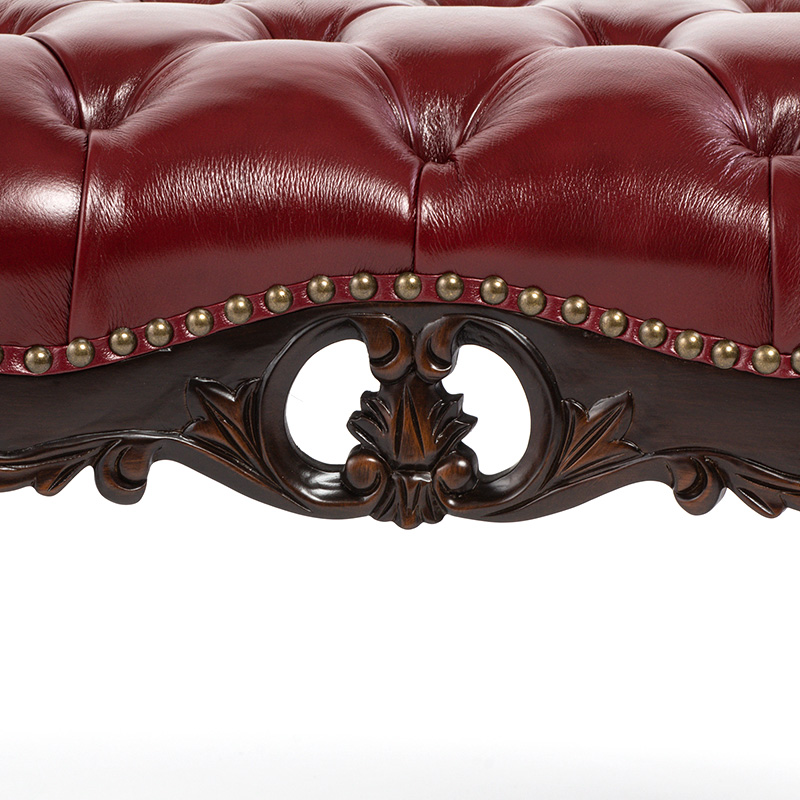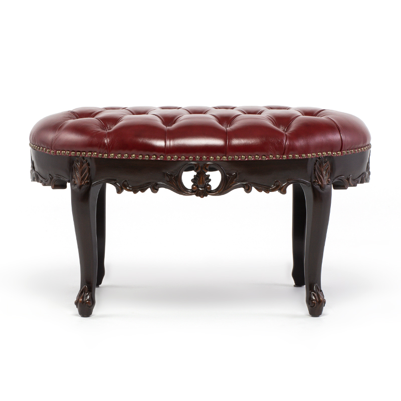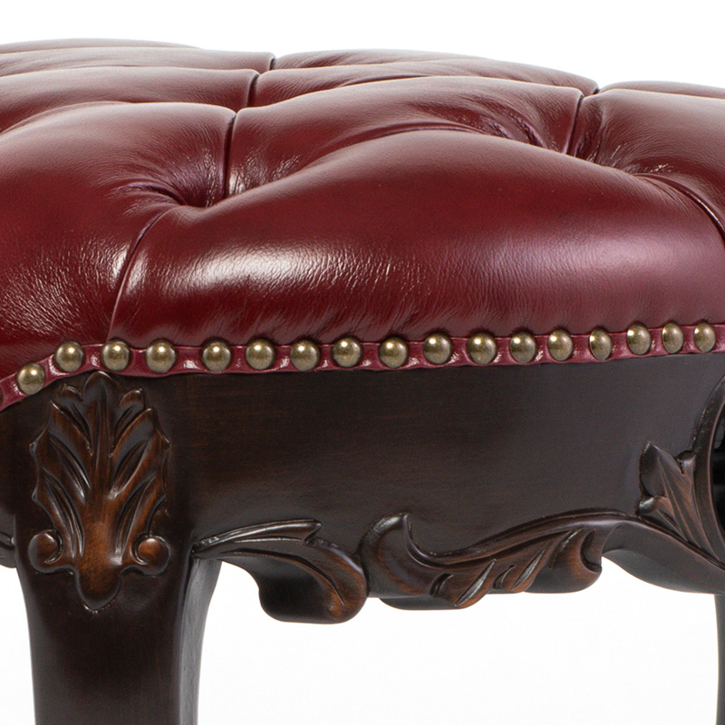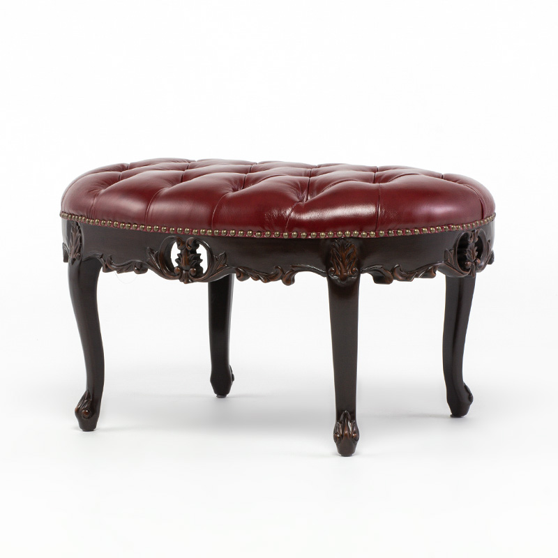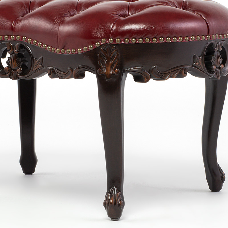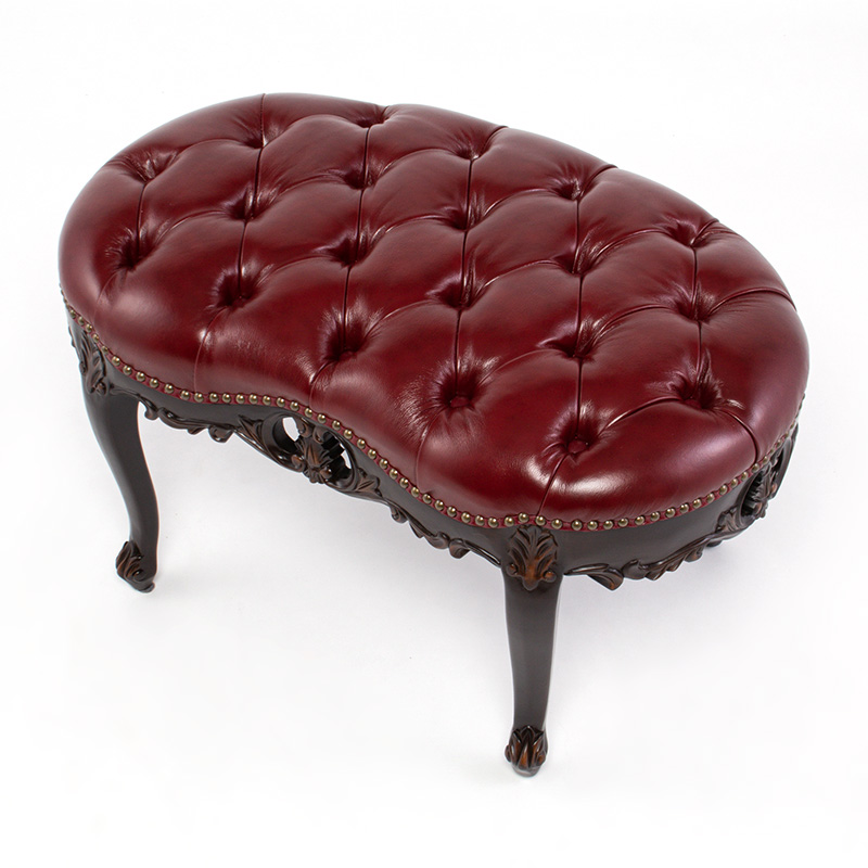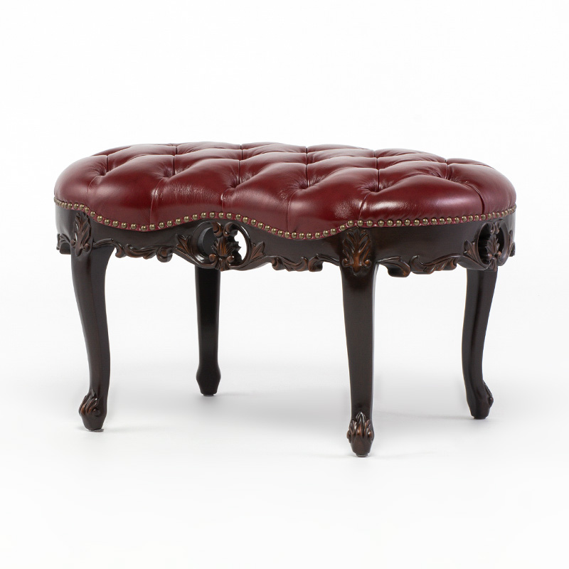 《Symphony シンフォニー》 ビーンズ型スツール チェアー ロココ調 猫脚 ヨーロピアン / ブラウン×レッド 本革