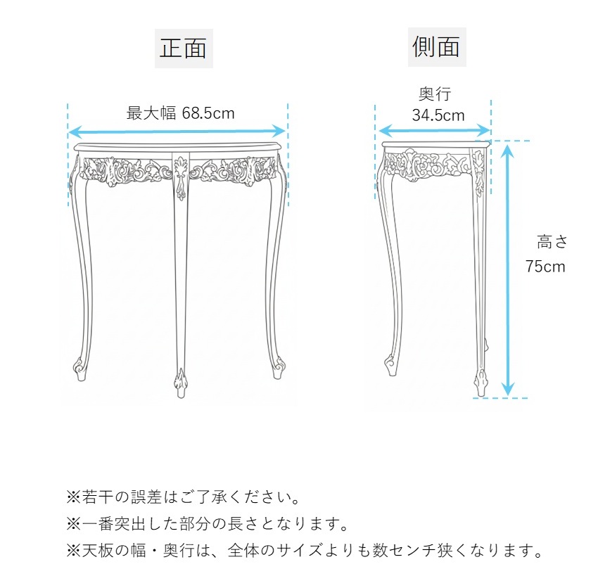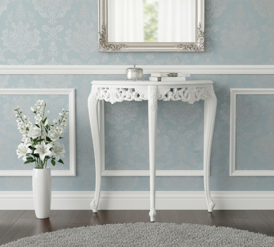ロココ調 コンソールテーブル サイドテーブル 壁付け 猫脚 木製 半円天板 ディスプレイ台 / ホワイト