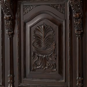 バロックスタイルの華やかな装飾を施した、存在感ある木製レジカウンター。