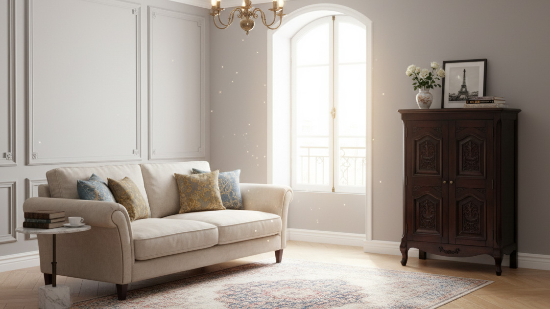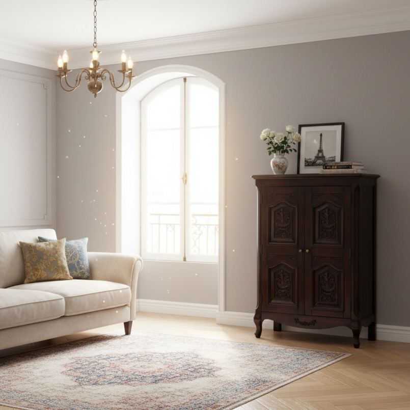クラシカルな趣きたっぷりの扉付きキャビネット。