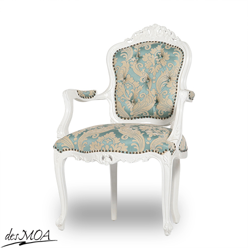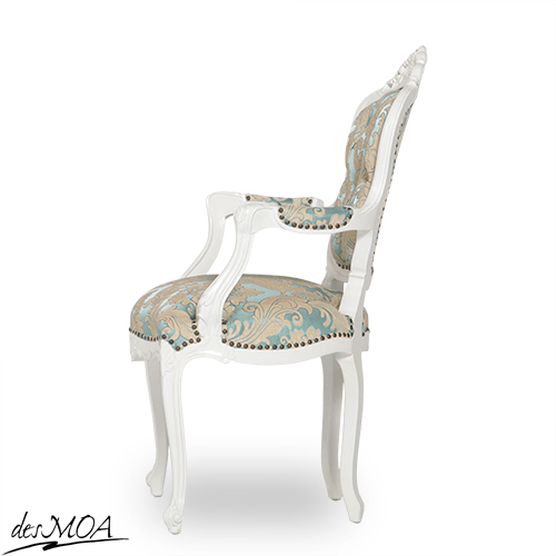 《Symphony シンフォニー》 アンティークロココ調 椅子 アームチェア 猫脚 / ホワイト×ブルーダマスク 布地