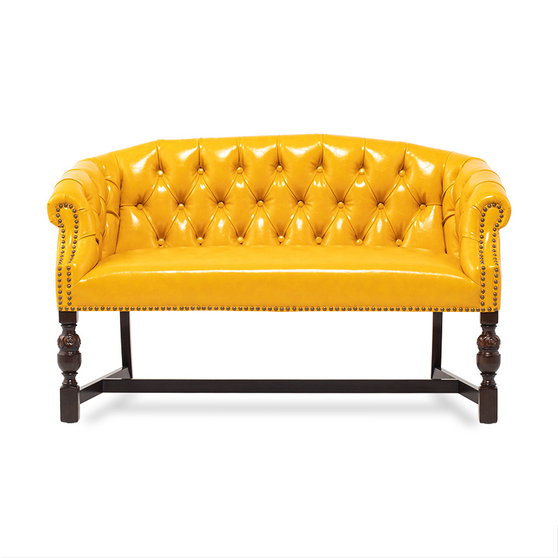 | 品名 | 【ヴィンセントシリーズ】 英国スタイル ラウンジチェア 2人掛け ベンチ 合皮 / イエロー |
