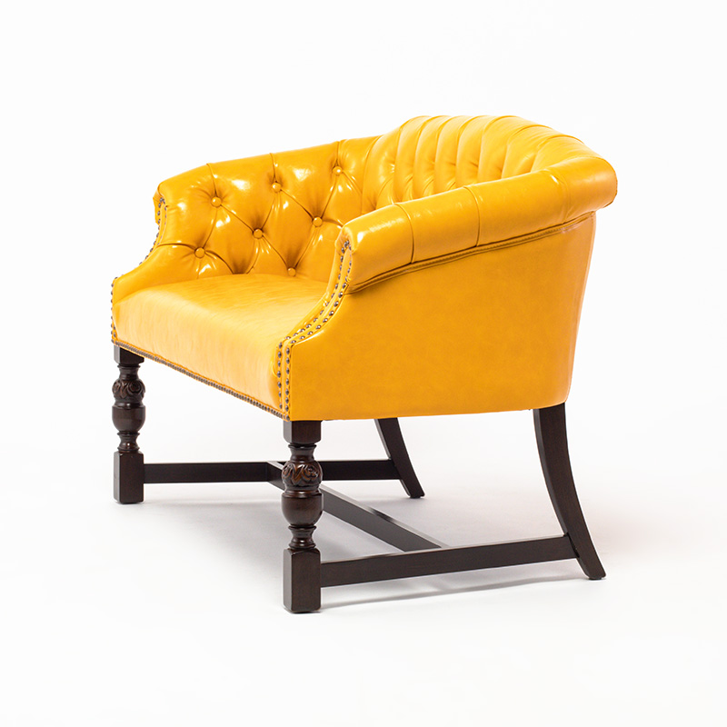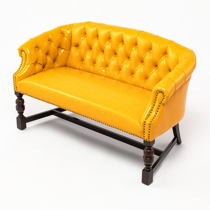 VINCENT ヴィンセントシリーズ 英国調 2人掛け ラウンジチェア アームチェア ベンチ 合皮 イエロー