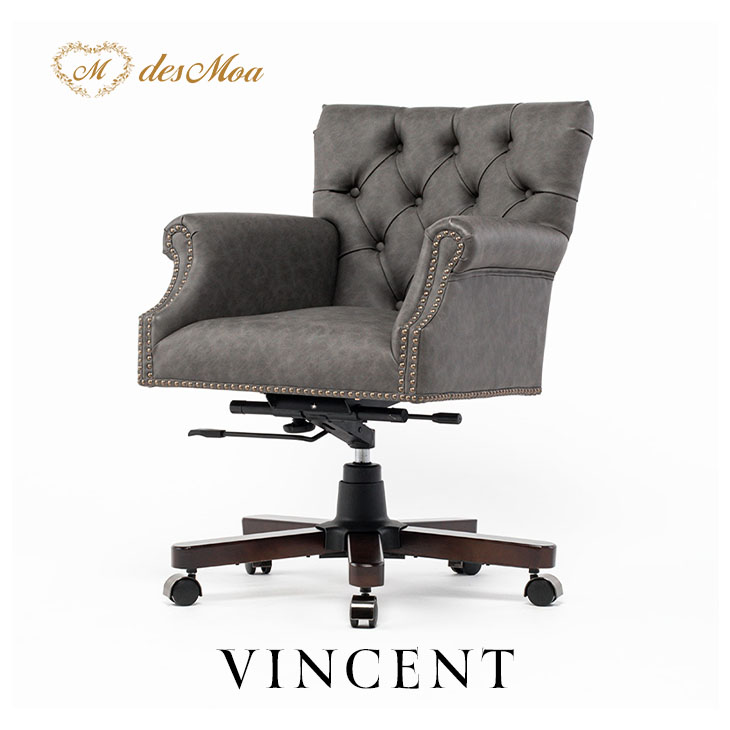 VINCENT ヴィンセントシリーズ 英国調 オフィスチェア デスクチェア キャスター 合皮 グレー