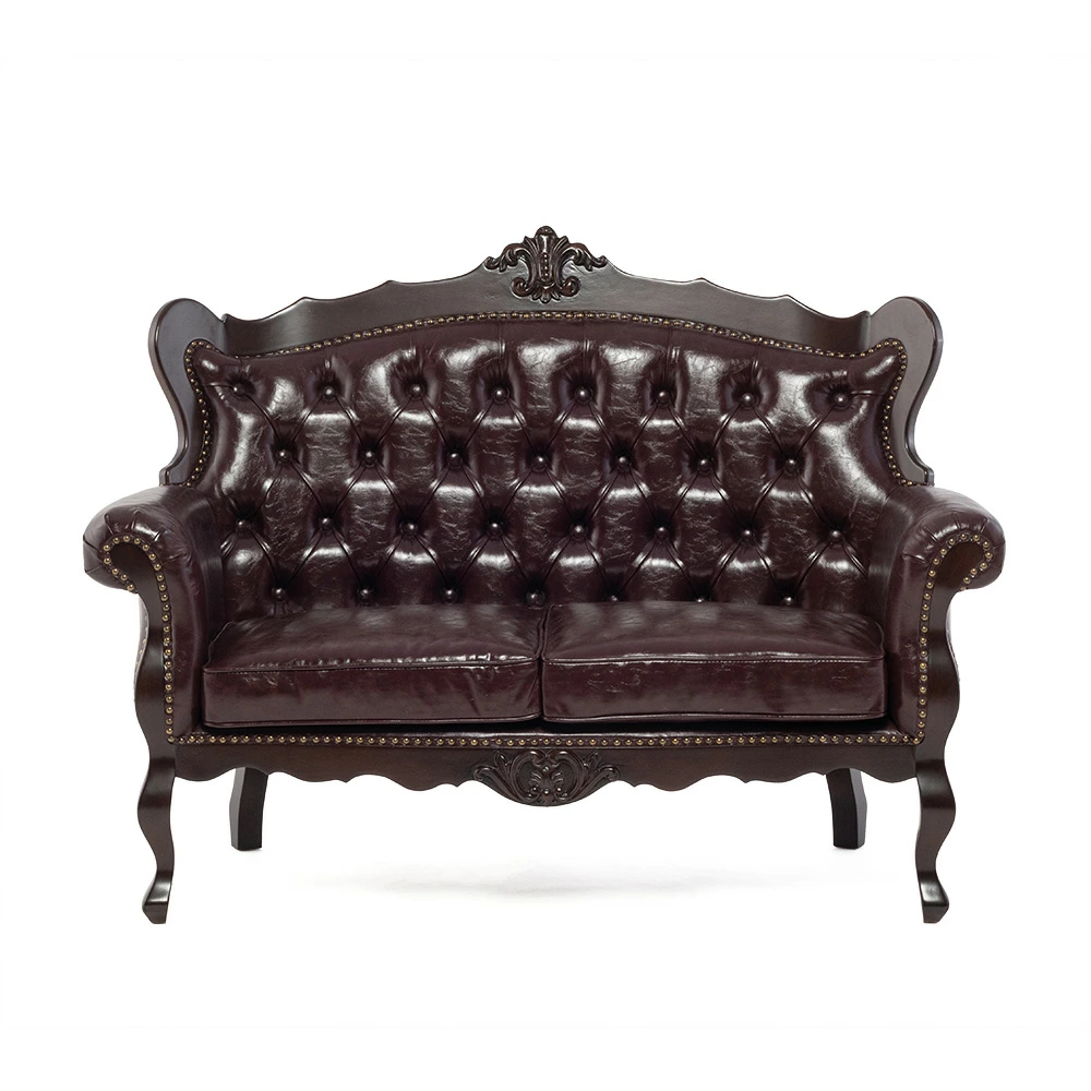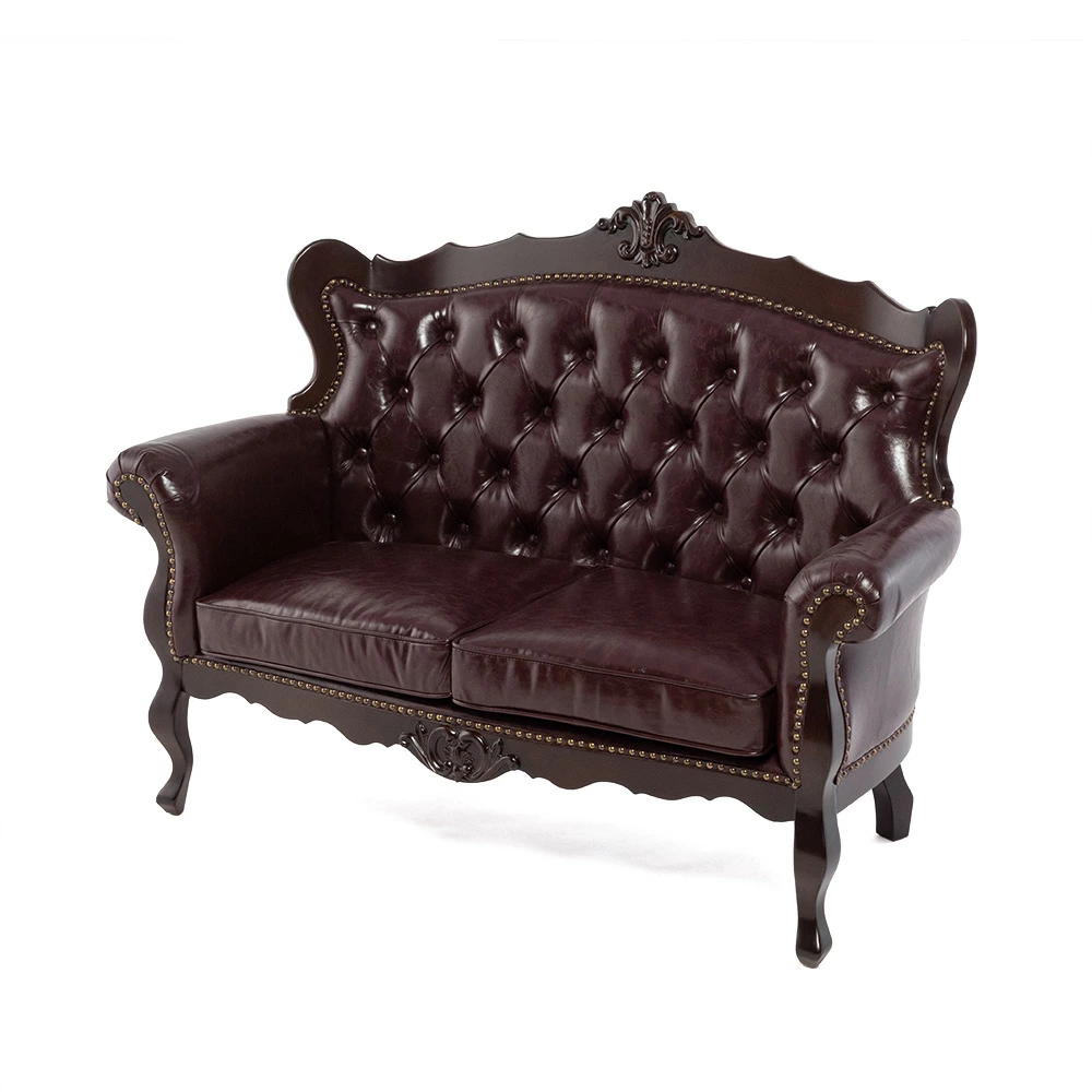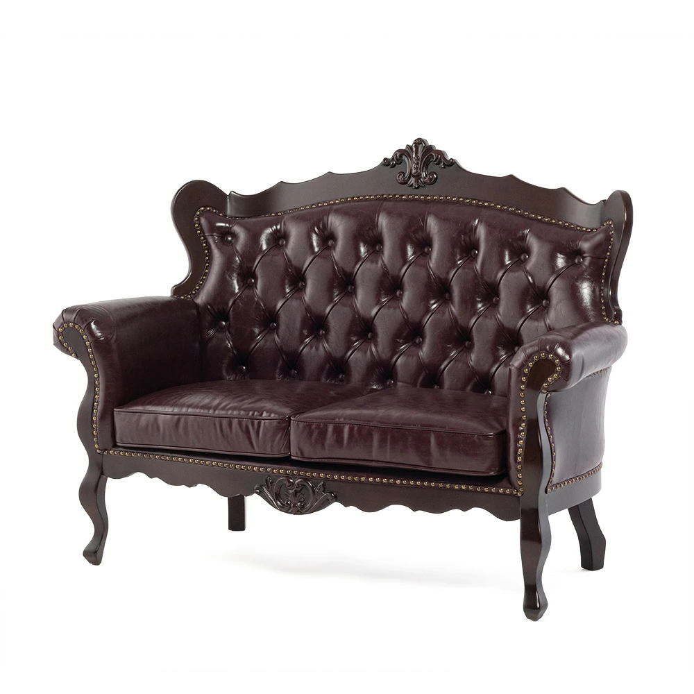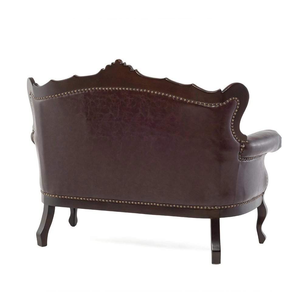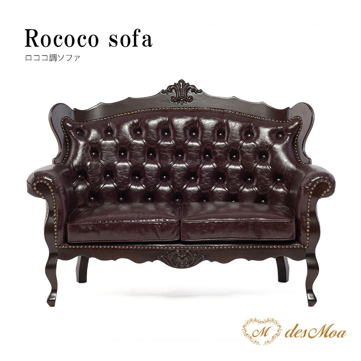 2人掛けソファ ロココ調 アンティーク調 ヨーロピアン 猫脚 / ブラウンフレーム×ブラウン 合皮
