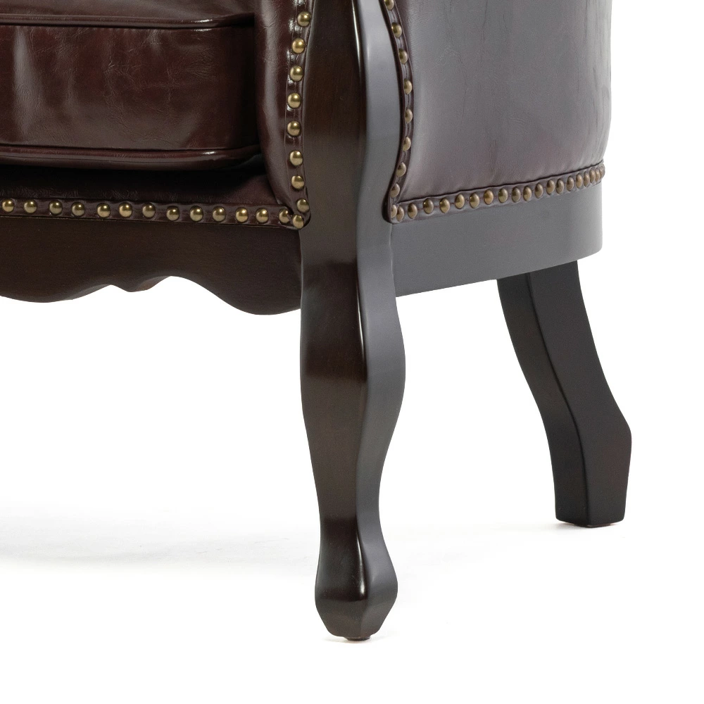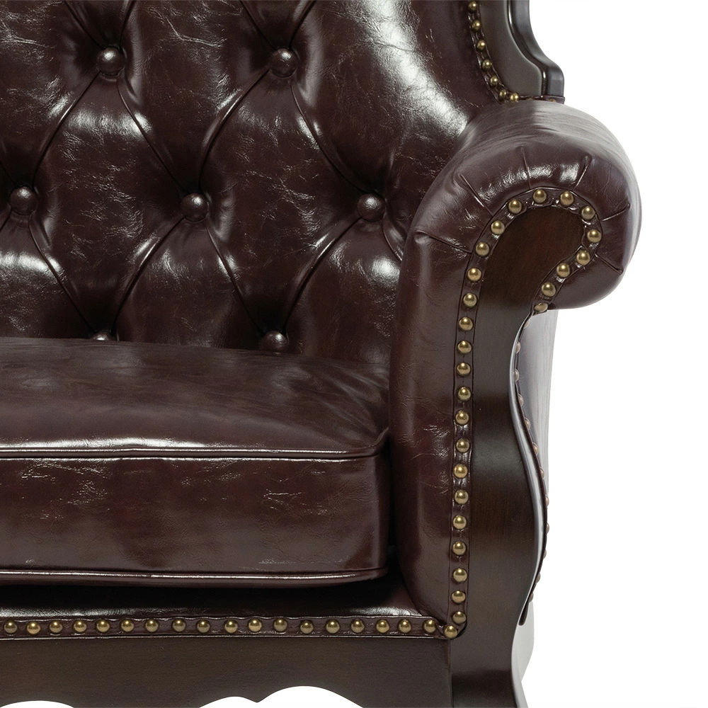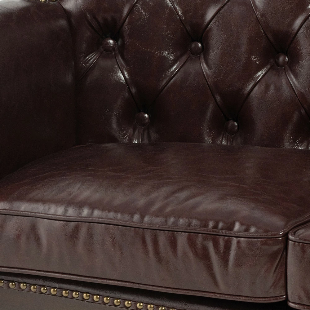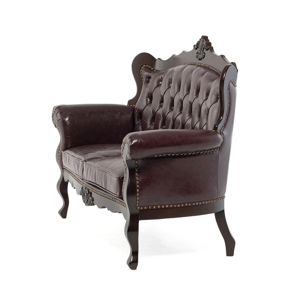 2人掛けソファ ロココ調 アンティーク調 ヨーロピアン 猫脚 / ブラウンフレーム×ブラウン 合皮