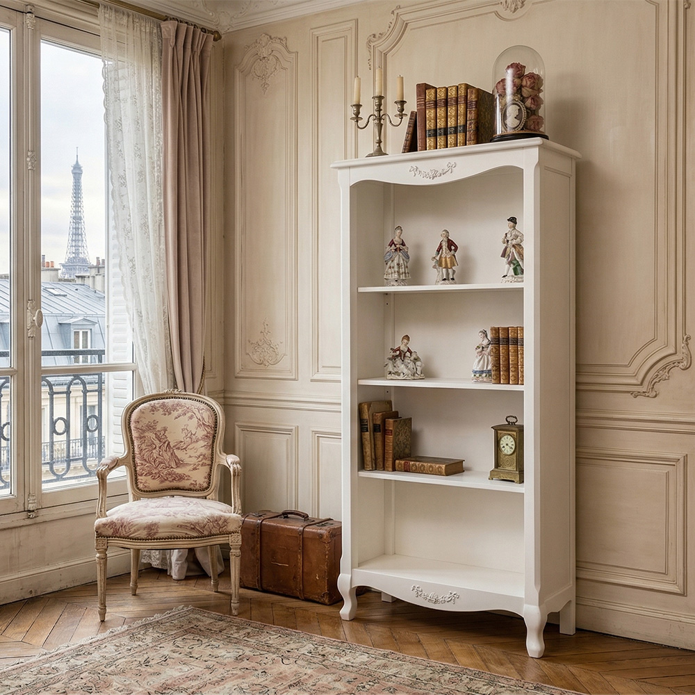 薄型トールサイズ!フレンチアンティーク調 ブックシェルフ ブックケース 本棚 飾り棚 ディスプレイ棚 / ホワイト