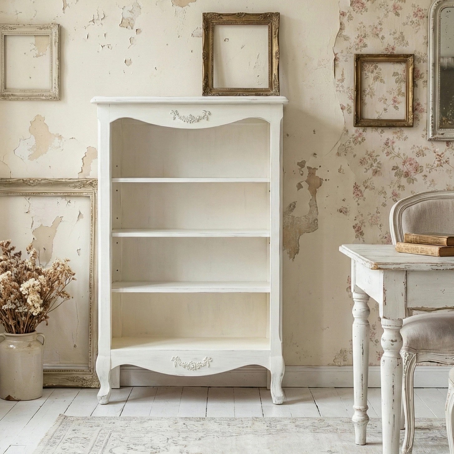 オープン ブックケース 本棚 飾り棚 ディスプレイ棚 アンティーク調 / アンティークホワイト