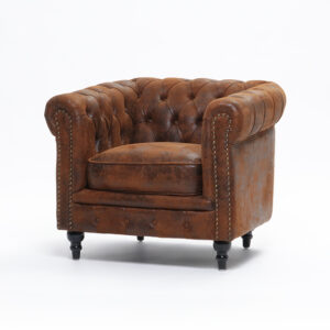 VINCENT ヴィンセントシリーズ 英国調 1人掛け チェスターフィールドソファ / ブラウン バックスキン風 布地