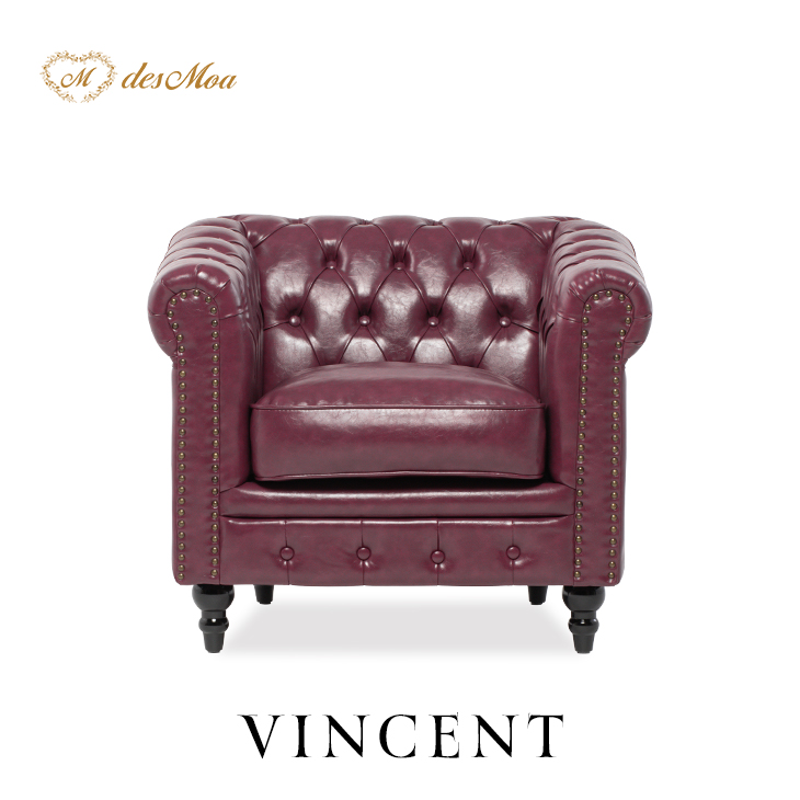 VINCENT ヴィンセントシリーズ 英国調 1人掛け チェスターフィールドソファ / パープル 合皮