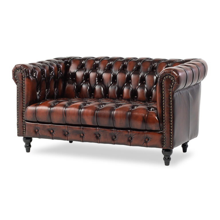 VINCENT ヴィンセントシリーズ 英国アンティーク調 2人掛けソファ ボタン留めシート / アンティークブラウン 本革