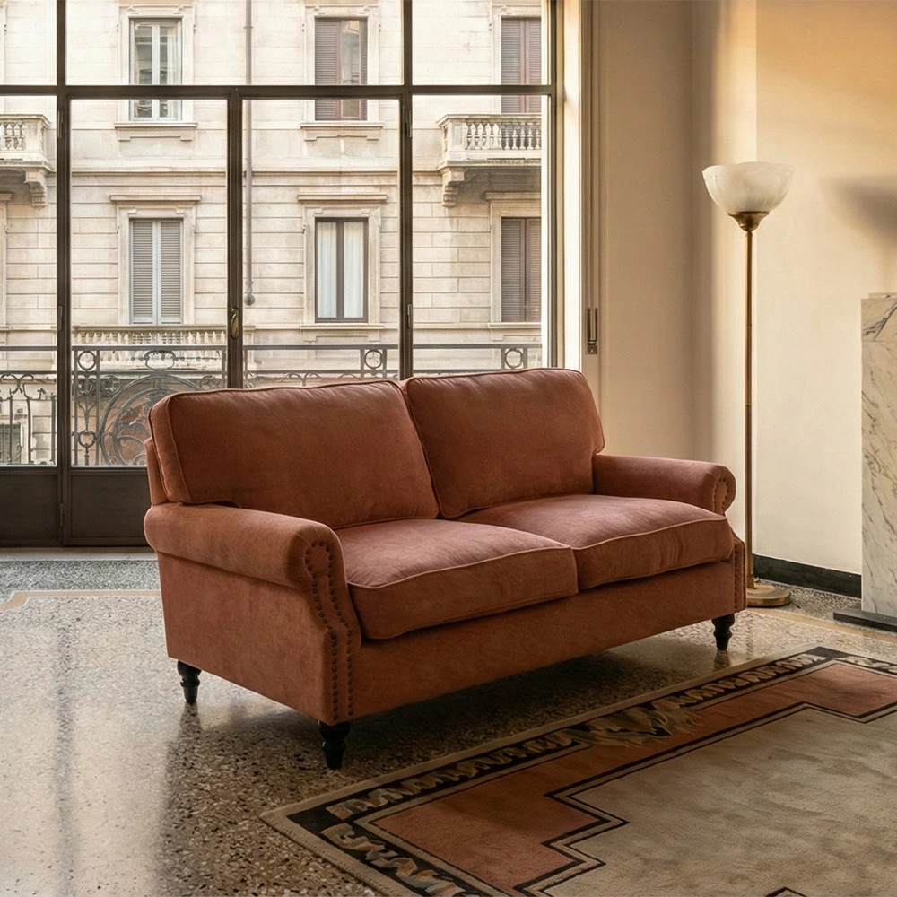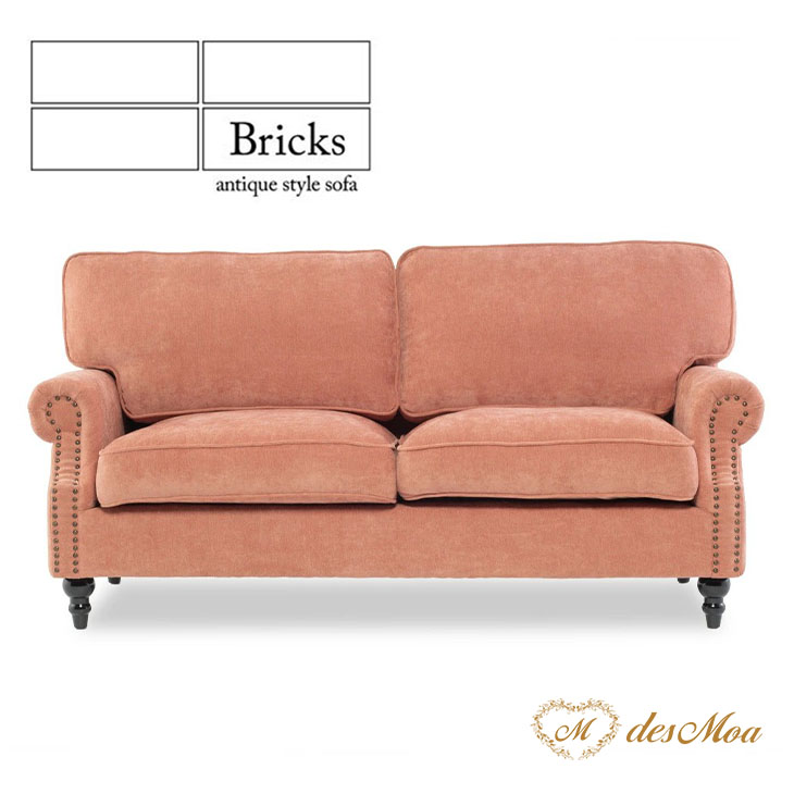 ≪Bricks ブリックス≫ 2.5人掛けソファトラディショナルソファ ヴィンテージスタイル / サーモンピンク 布地