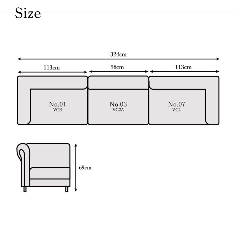 ・No.01 パーツ…W 113cm x D 78cm x H 69/シート高:45cm