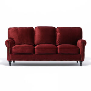 VINCENT ヴィンセントシリーズ 英国調 3人掛け ソファー トリプル 背もたれクッション レッドベルベット 布地