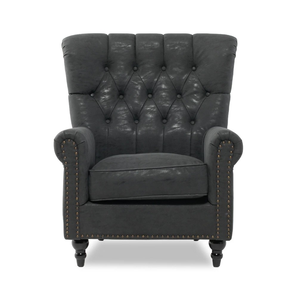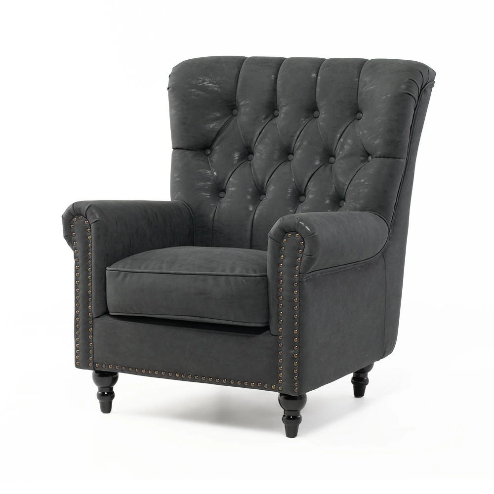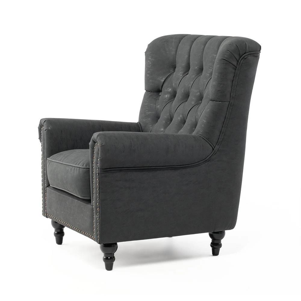 VINCENT ヴィンセントシリーズ 英国調 ハイバックソファ 1人掛け シングル レトロモダン チャコールグレー 合皮