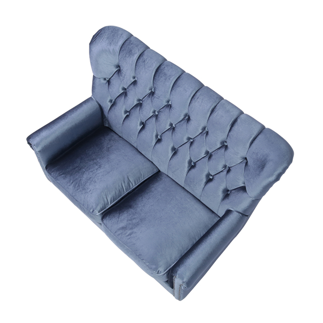 VINCENT ヴィンセントシリーズ 英国調 ハイバックソファ 2人掛け ダブル レトロモダン ブルーベルベット 布地