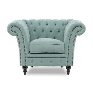 アームの曲線がエレガント! VINCENT ヴィンセント 英国アンティーク調 1人掛けソファ シャーベットブルー 布地