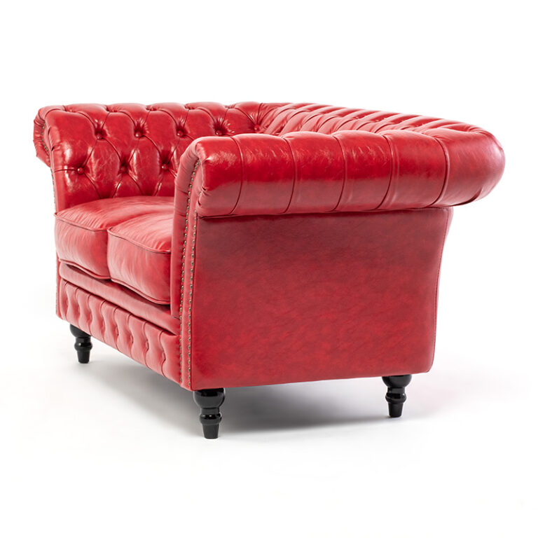 アームの曲線がエレガント! VINCENT ヴィンセント 英国アンティーク調 2人掛けソファ レッド 合皮