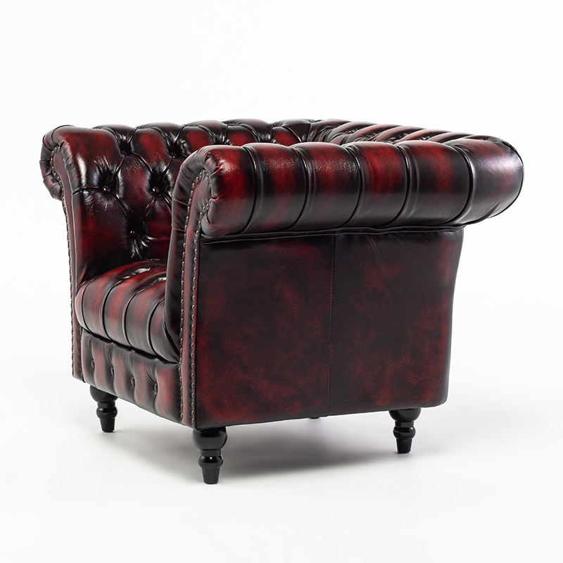 アームの曲線がエレガント! VINCENT ヴィンセント 英国アンティーク調 1人掛けソファ 座面ボタン留め アンティークレッド 本革