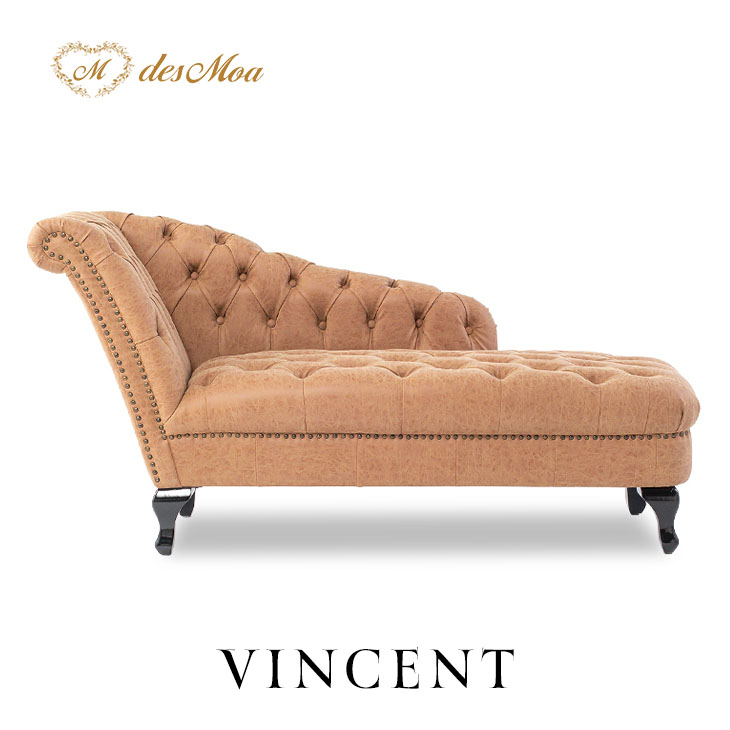 《 VINCENT ヴィンセント 》 カウチソファ 2人掛け 英国調 コンパクトサイズソファー / キャメル 合皮