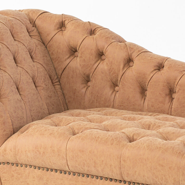 背もたれ、アーム、座面にボタン留めを施し、