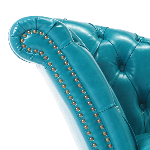 《 VINCENT ヴィンセント 》 カウチソファ 2人掛け 英国調 コンパクトサイズソファー / ターコイズブルー 合皮