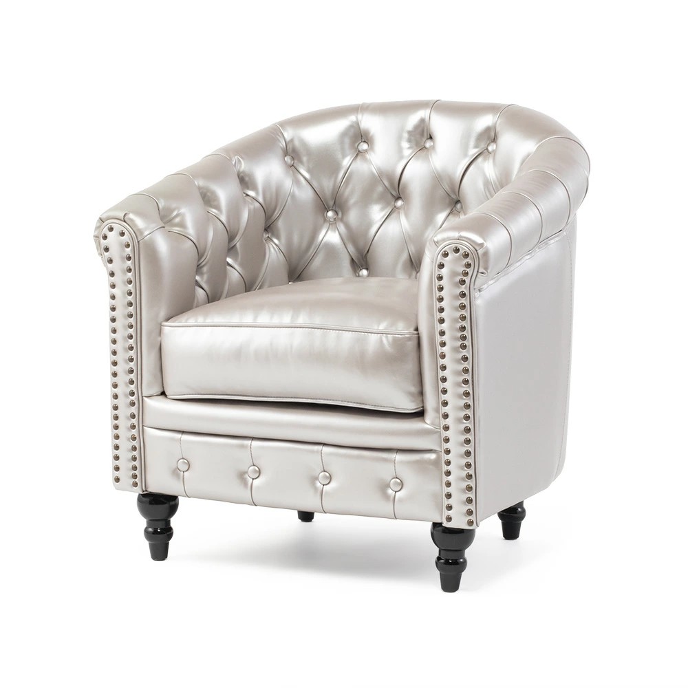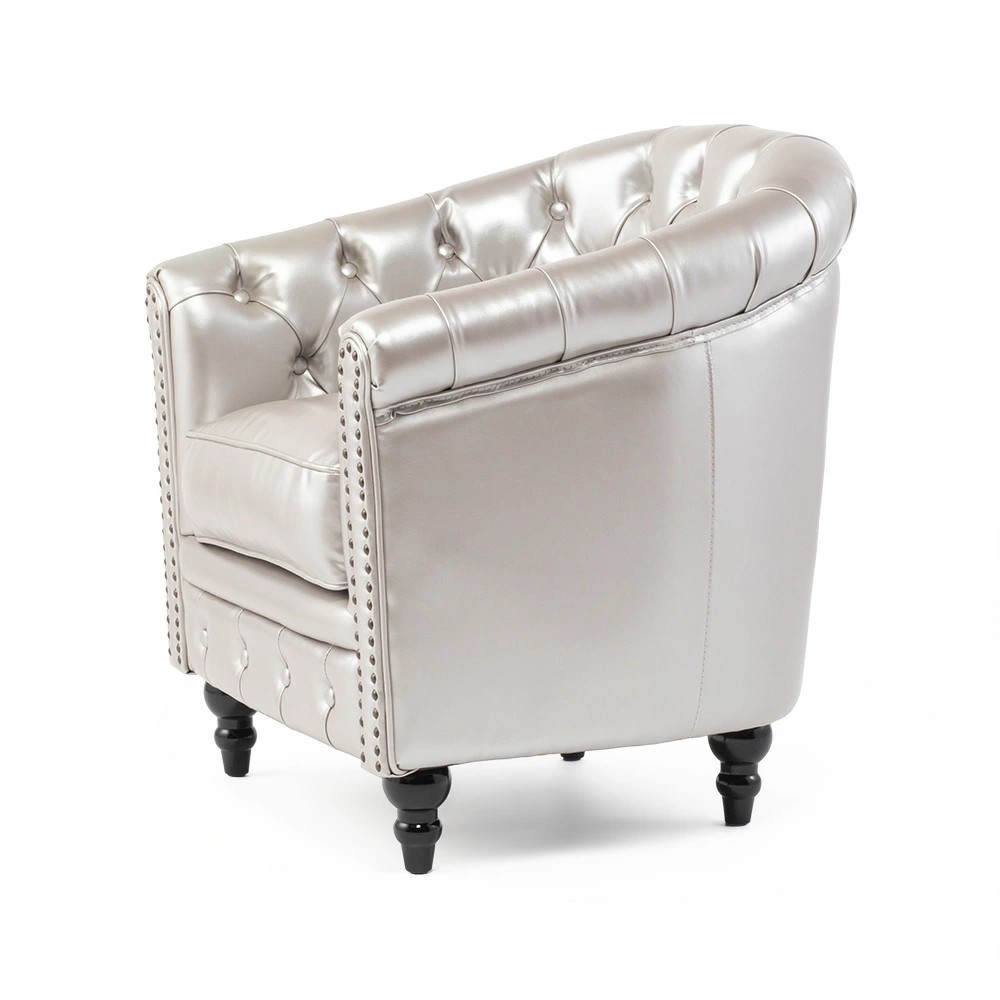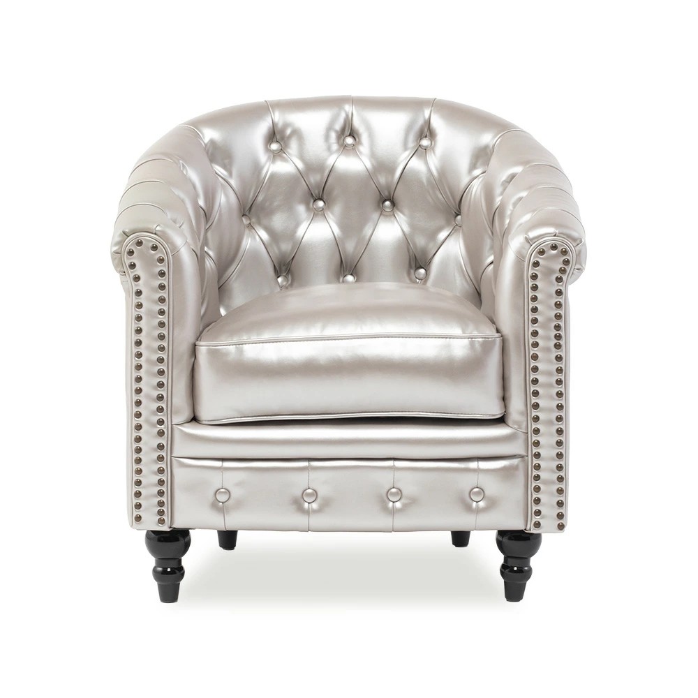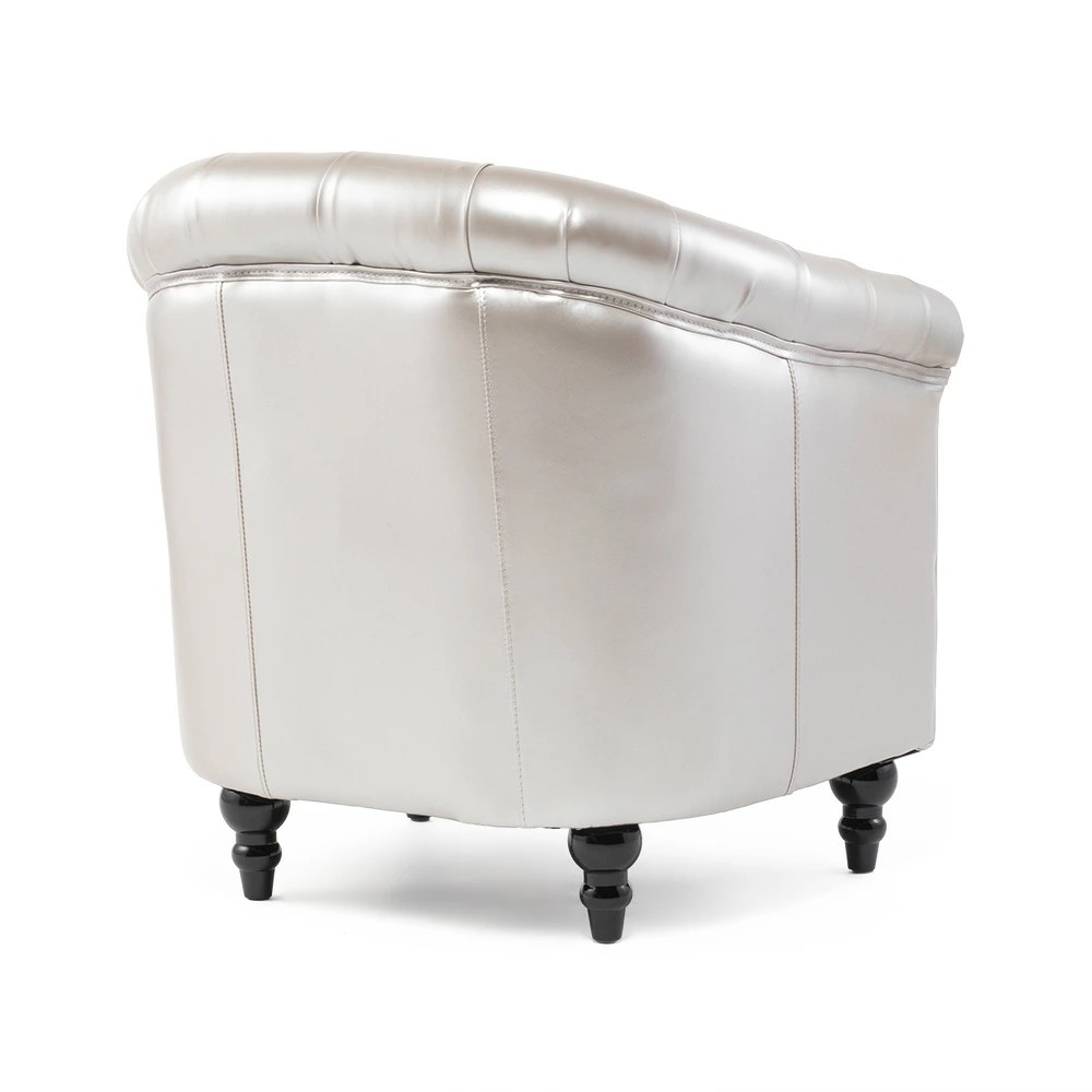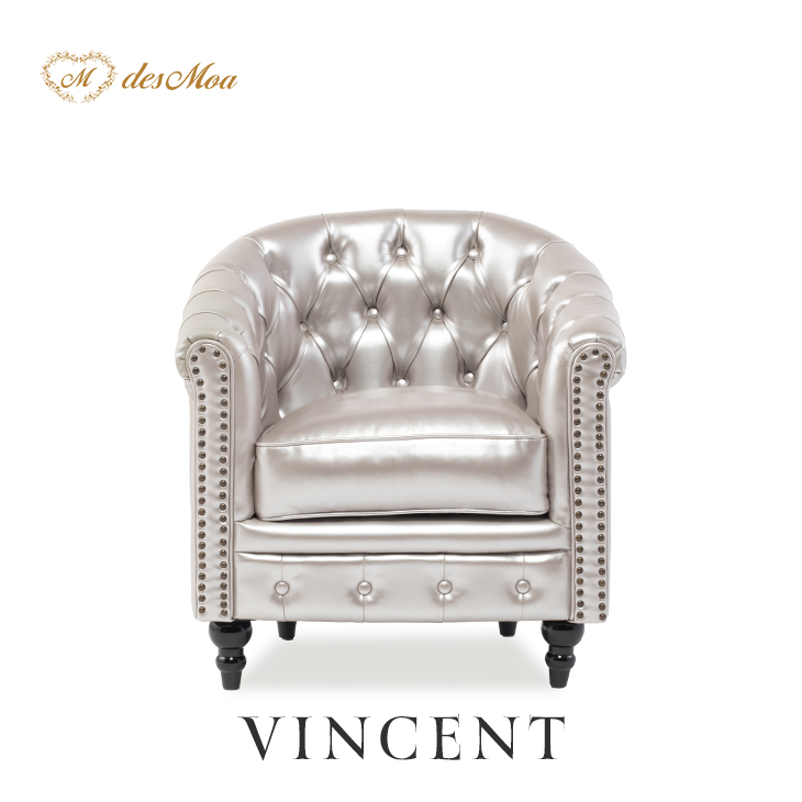 VINCENT ヴィンセントシリーズ 英国調 1人掛け ラウンジソファ チェスターフィールドソファ / シルバー 合皮