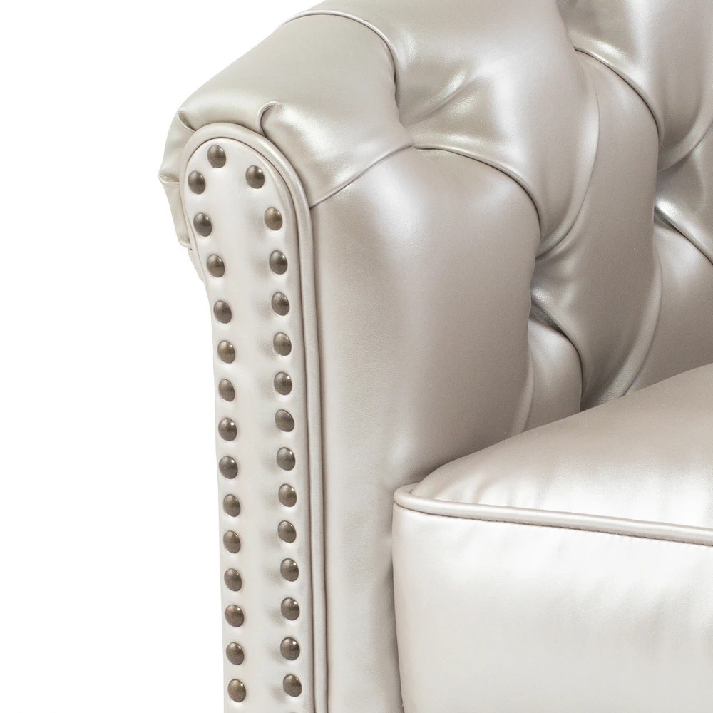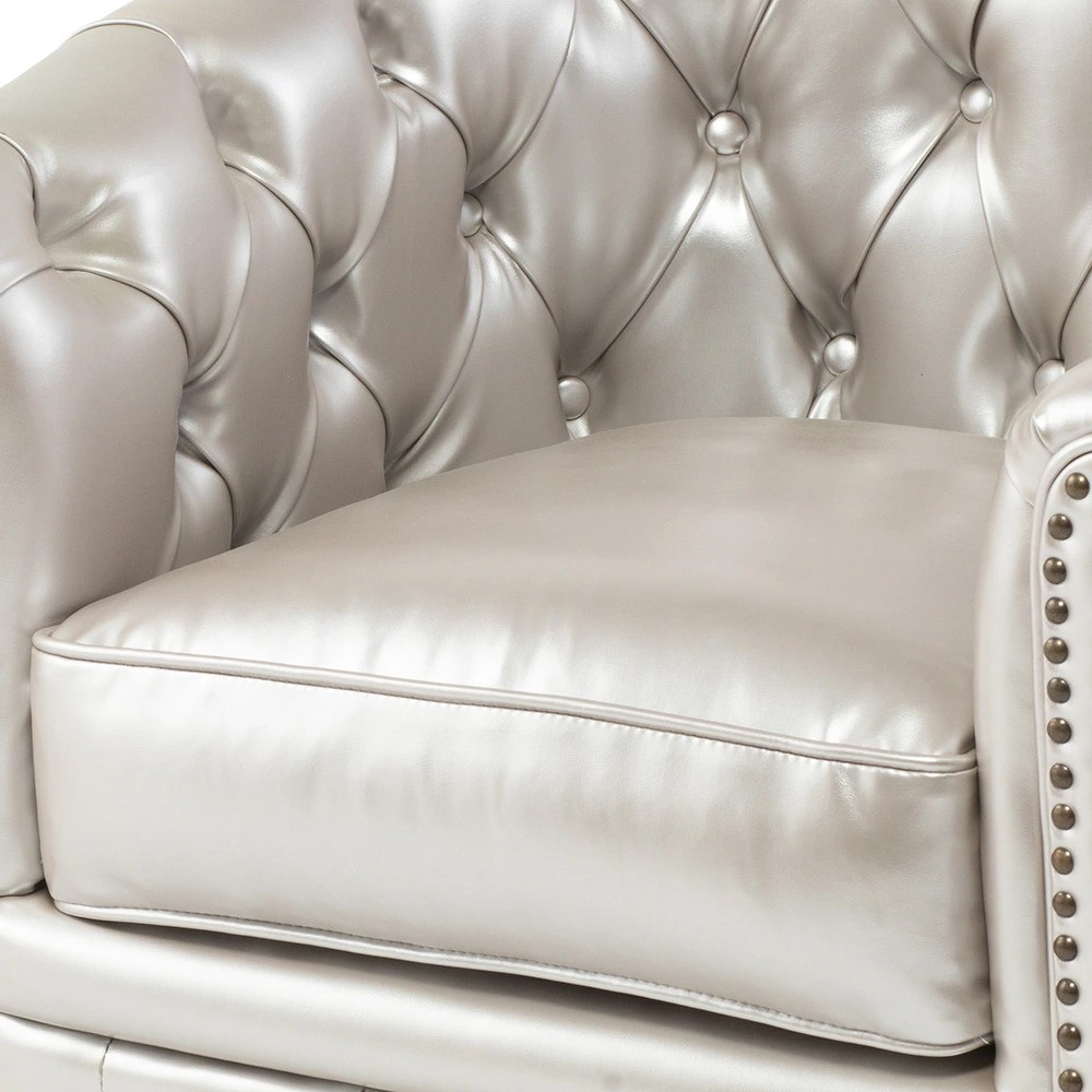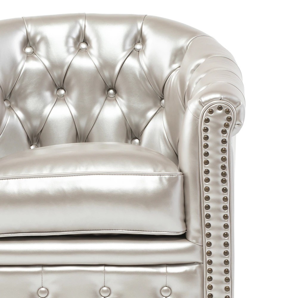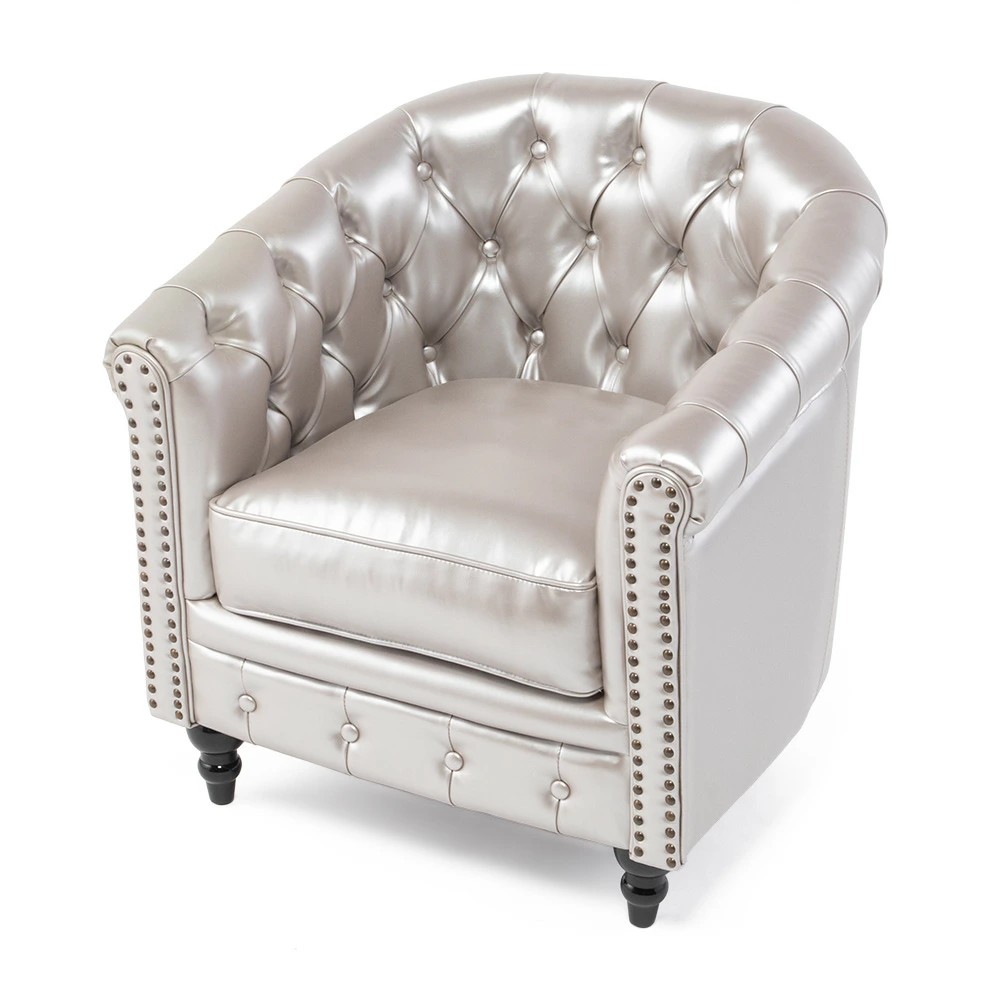 VINCENT ヴィンセントシリーズ 英国調 1人掛け ラウンジソファ チェスターフィールドソファ / シルバー 合皮
