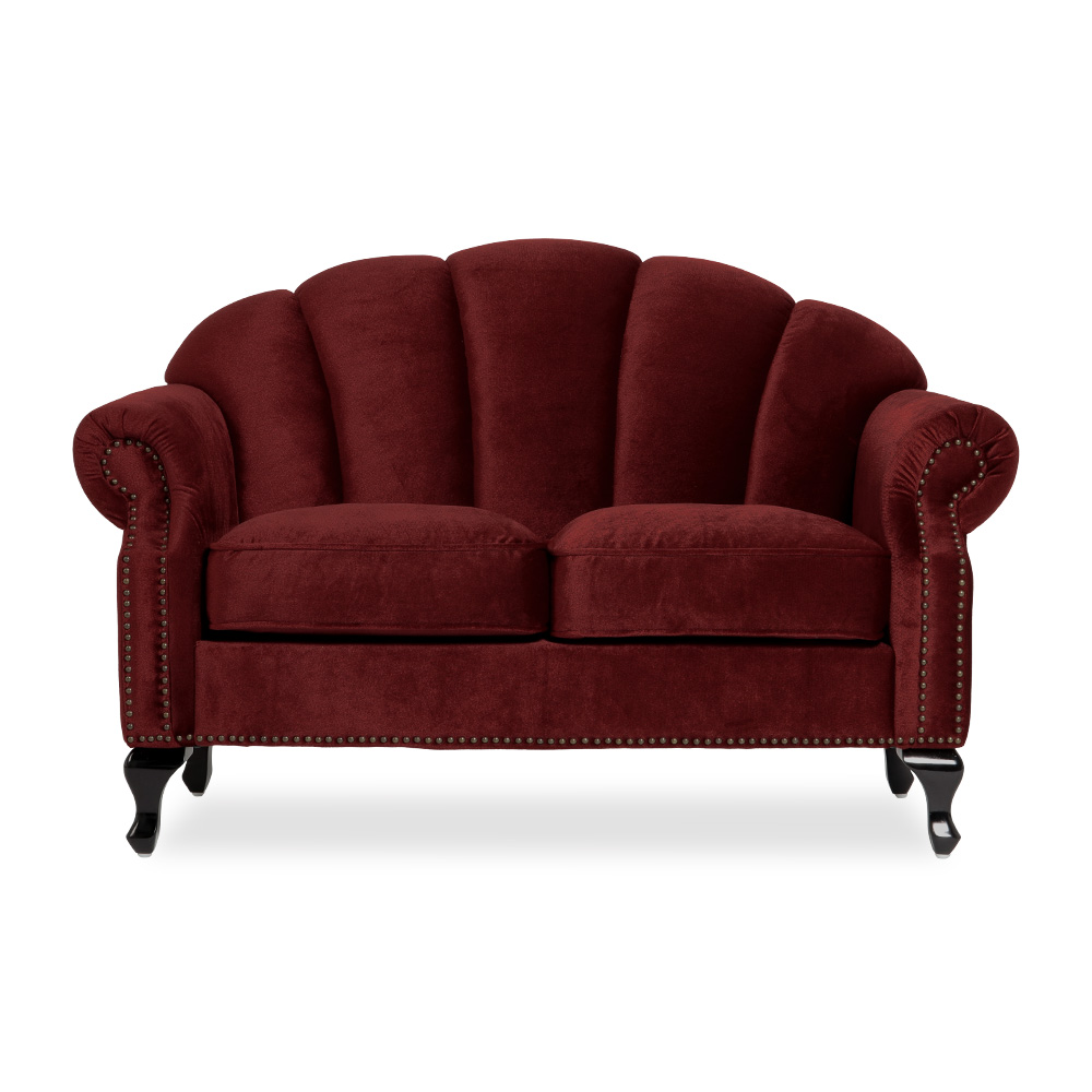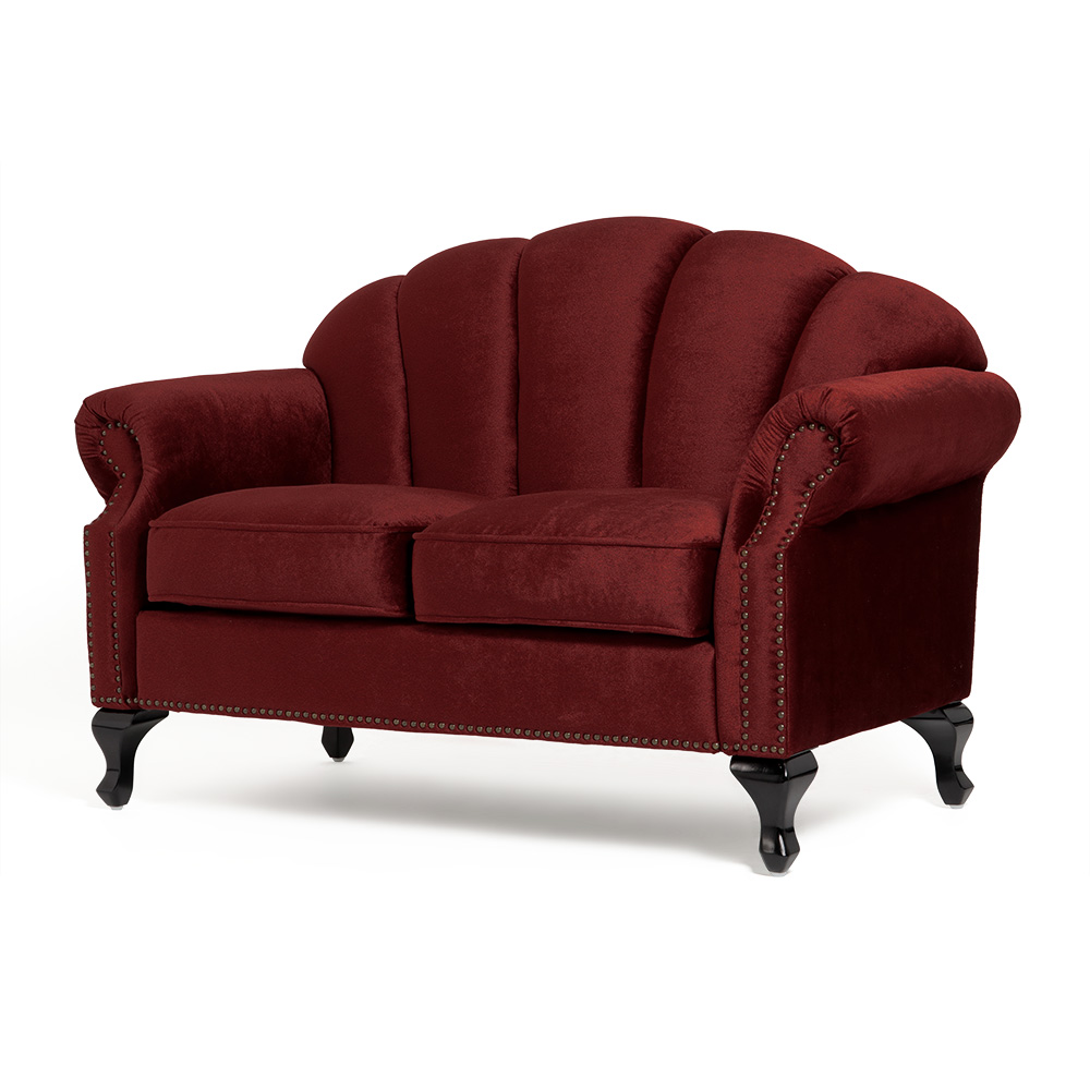 Shellfa シェルファ ソファー かわいい貝殻モチーフ 2人掛けソファ 2人用 ダブル 猫脚 / レッドベルベット 布地