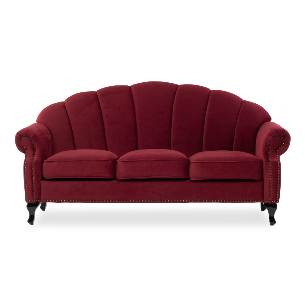 Shellfa シェルファ ソファー かわいい貝殻モチーフ 3人掛けソファ 3人用 トリプル 猫脚 / レッドベルベット 布地
