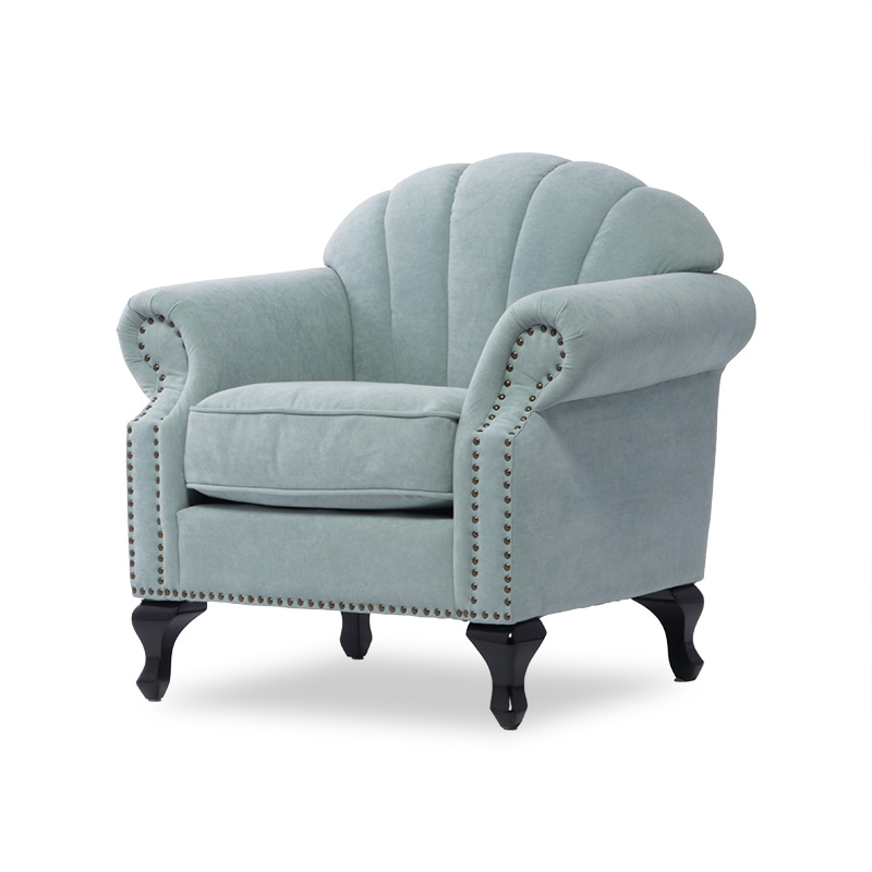背もたれ5枚の限定モデル!≪貝殻ソファ≫Shellfa シェルファ 1人掛けソファー シェル型 シングルソファ パーソナルソファ 猫脚 / 布地 シャーベットブルー