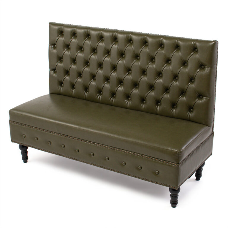 連結可能!VINCENT ヴィンセントシリーズ ベンチソファ 英国調 2人掛け 背面フラット / オリーブグリーン 合皮